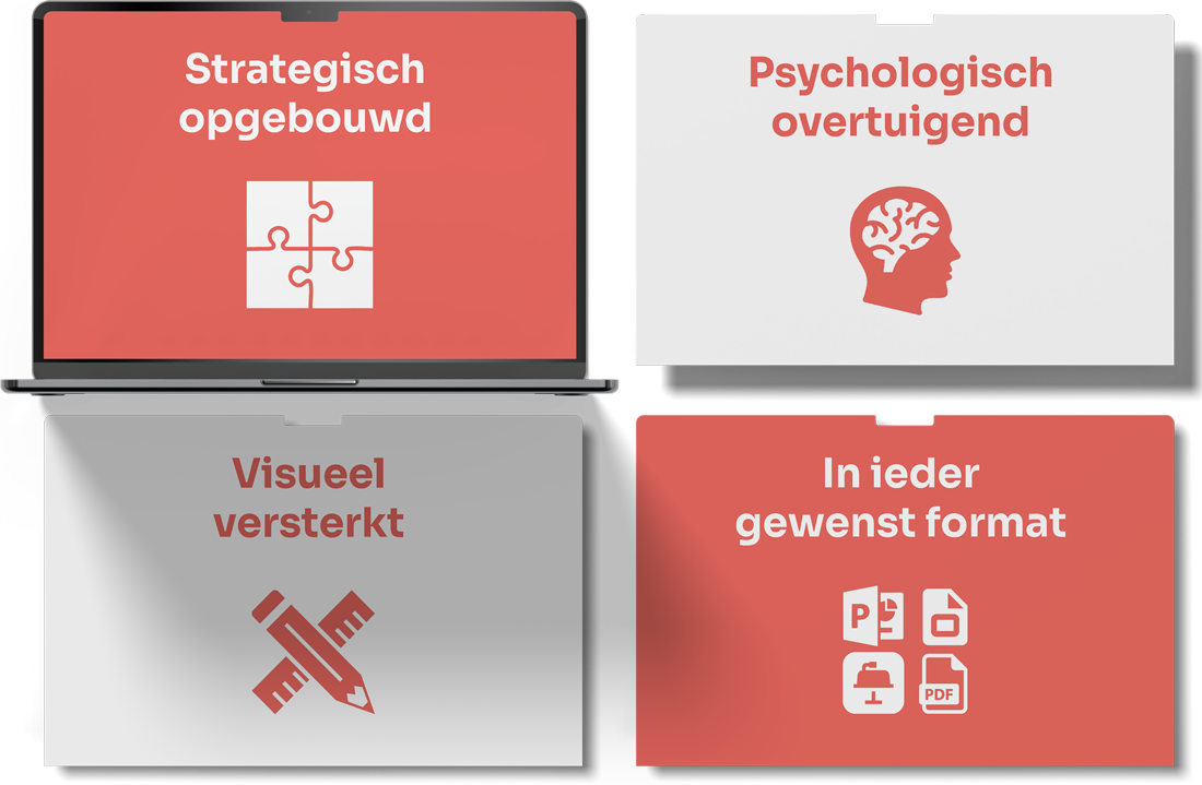 Onze presentaties zijn ingezet bij talloze overnames, investeringsrondes, salestrajecten en pitches. Daar waar het moment telt, telt het verhaal.